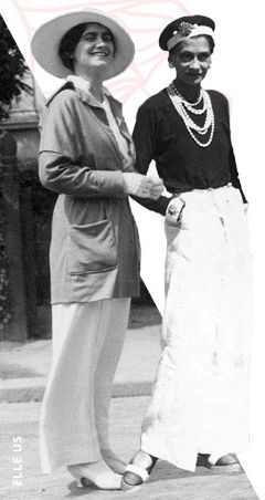 Abia în anii 30 pantalonii pentru femei încep să fie populari. Deși producătorii de la Hollywood îi interziceau lui Katharine Hepburn să îi poarte pe platou, ea se încăpățâna să o facă pentru că îi găsea foarte confortabili. Mai târziu, într-un interviu în anii 80, Catherine Hepburn a spus: „Mi-am pus pantaloni acum 50 de ani și am ales o cale de mijloc. Nu am trăit ca o femeie, am trăit ca un bărbat”. În anii 30, croiul pantalonilor pleacă de la tiparele de fuste, având turul foarte lăsat, talia înaltă și sunt largi, un fel de fustă-pantalon lungă cum le-am spune noi astăzi. Sunt iconice imaginile cu Marlene Dietrich, Katharine Hepburn sau Coco Chanel purtând pantaloni în acea perioadă.