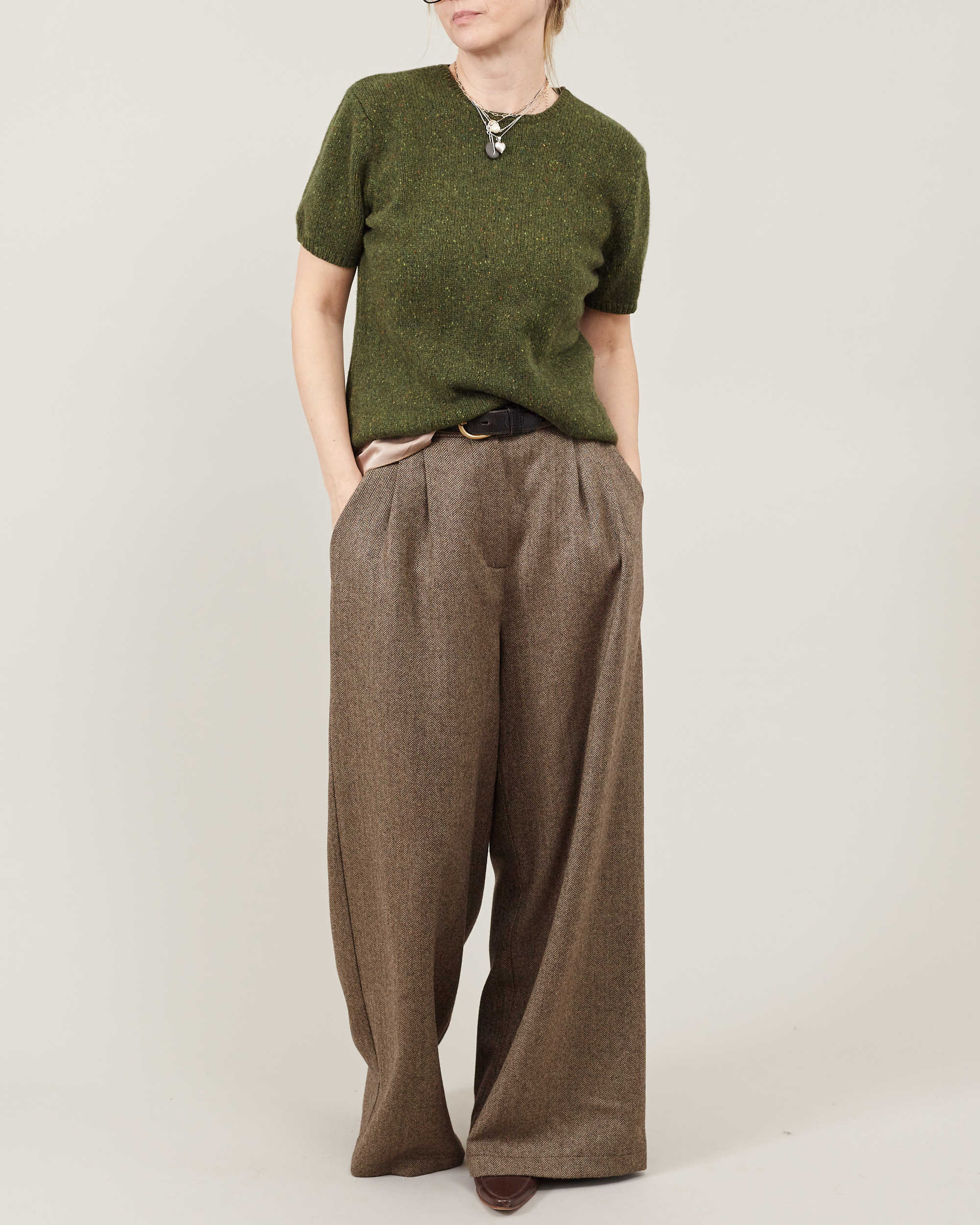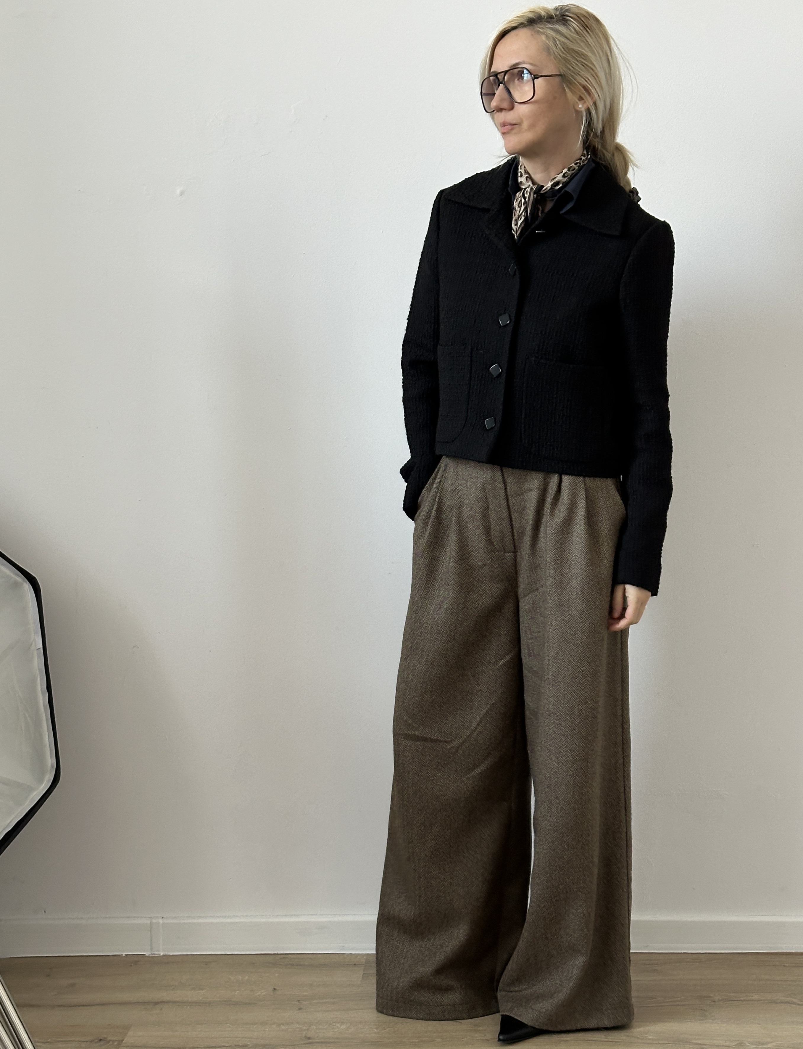 Unul dintre modelele noastre preferate pentru iarnă sunt pantalonii largi din stofă de lână groasă. Au talie înaltă si pliuri, un croi clasic ce se potriveste tutror tipurilor de conformație și în plus nu se demodează niciodată. Avem o selecție variată de stofe de lână în nuanțe versatile și imprimeuri elegante, distinse. Se potrivesc perfect cu o cămașă de mătase sau un pulover din cașmir, pentru un look rafinat de birou. Sau ii poți purta cu pantofi sport și un hanorac oversized pentru weekend.