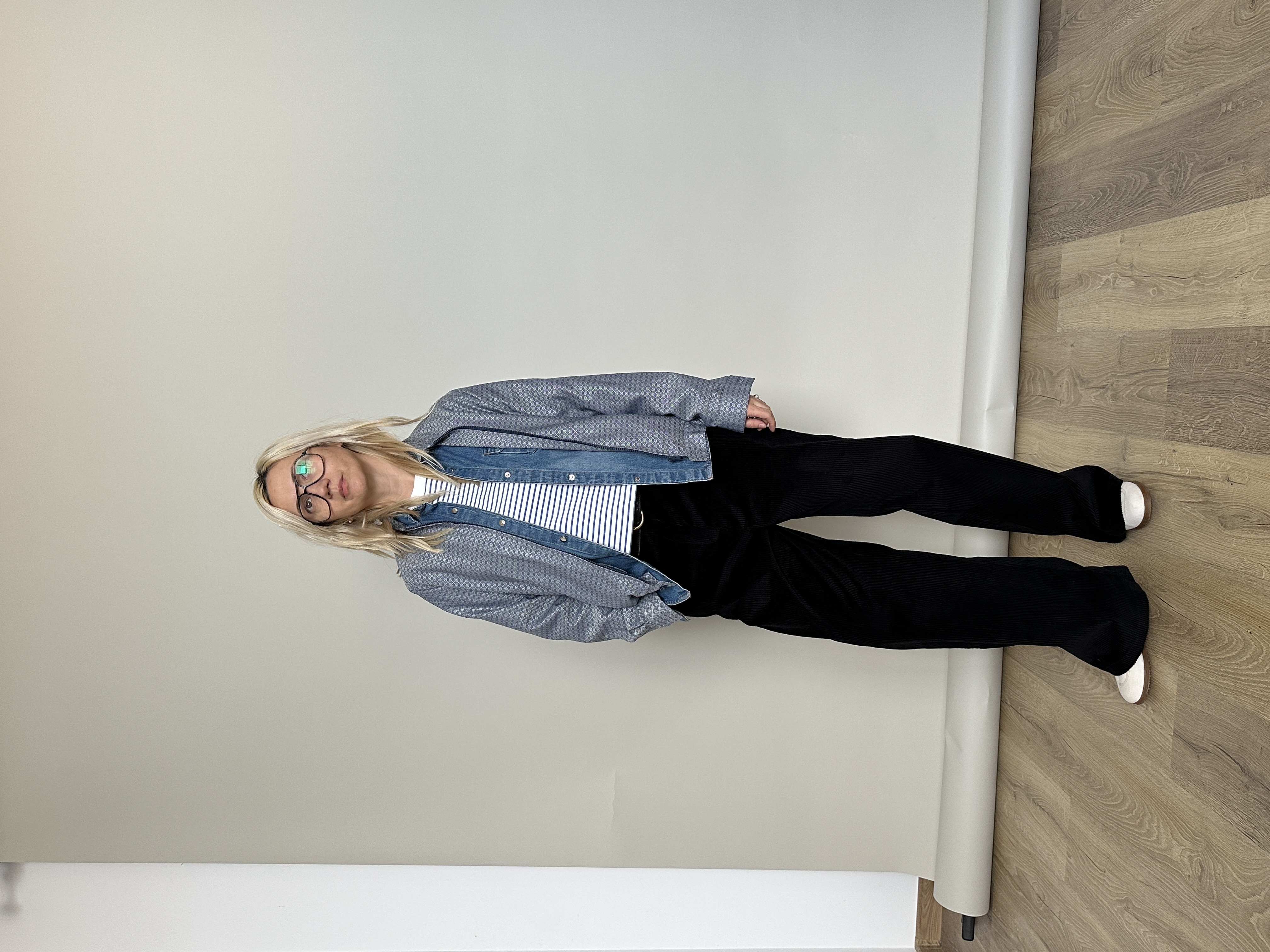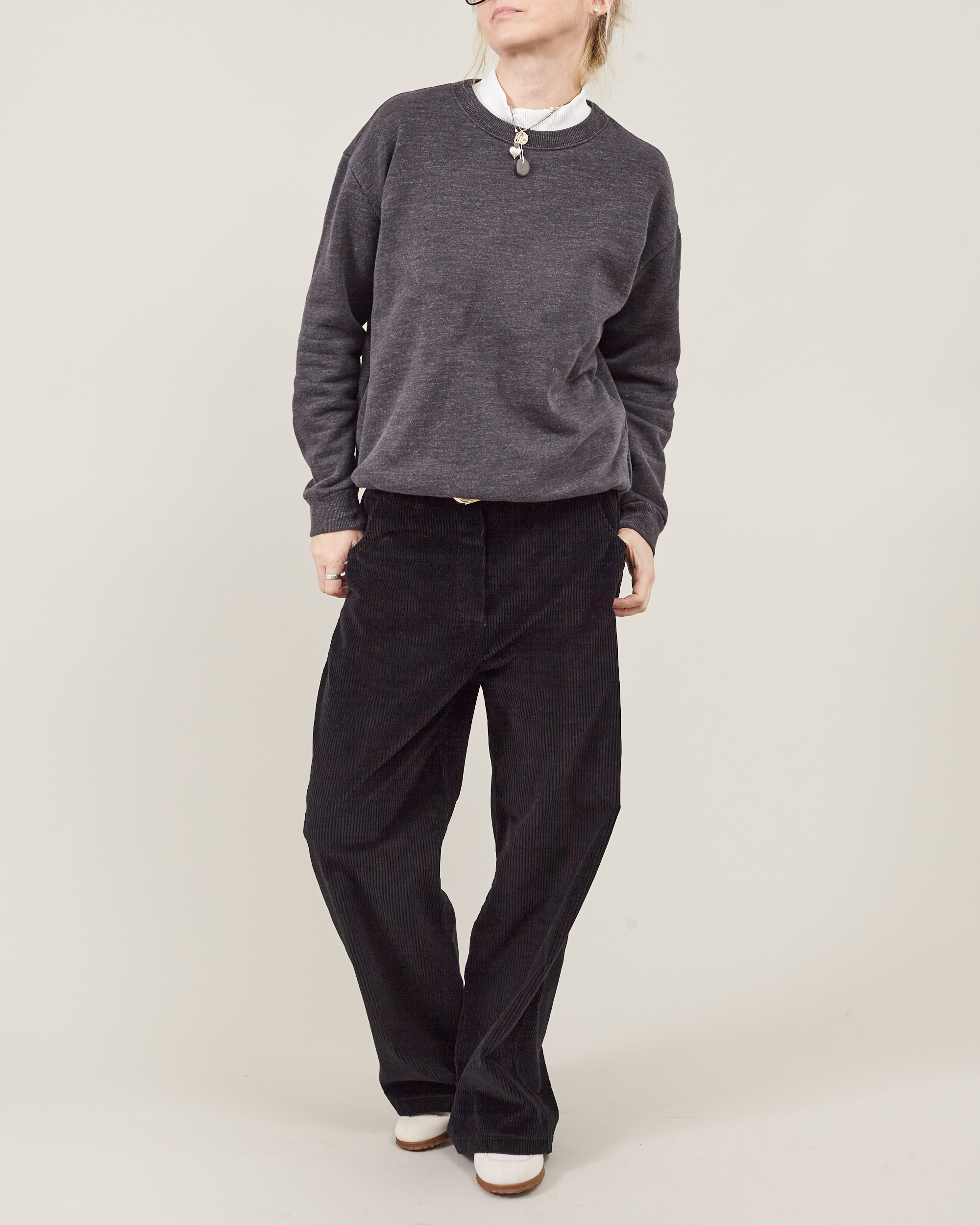 Pentru zilele relaxate, pantalonii din catifea raiată de bumbac sunt alegerea ideală. Sunt moi, călduroși și au o eleganță discretă. Noi îi facem cu talie medie, croi larg, ușor evazat și buzunare încăpătoare în față. Am adăugat la spate un buzunar cu refilet și inchidere cu nasture pentru un aspect premium și un aer ușor masculin. Sunt pantalonii pe care ajungi să-i porți zi de zi — de la primele zile de toamnă până în primăvară.
