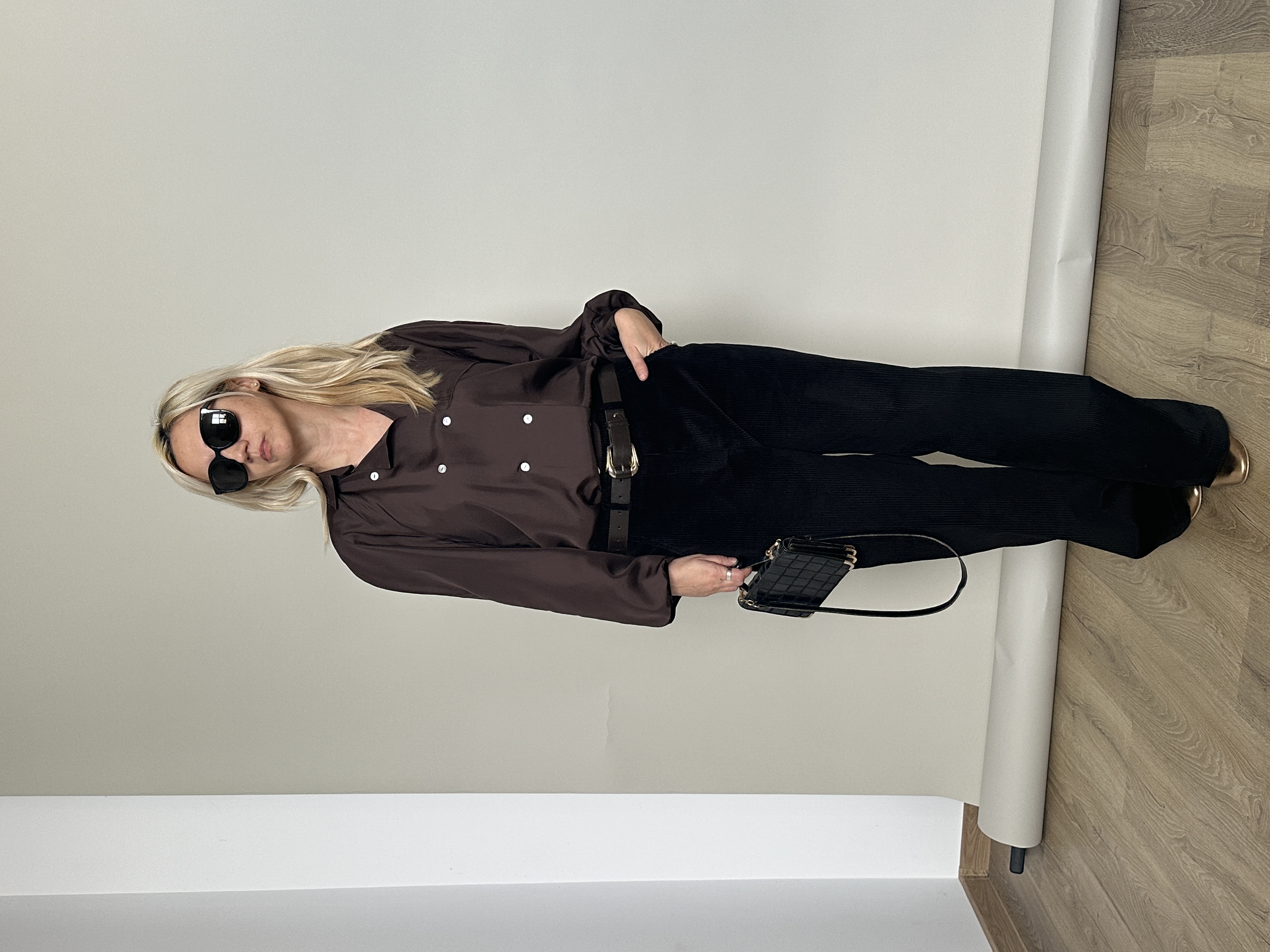 Pentru zilele relaxate, pantalonii din catifea raiată de bumbac sunt alegerea ideală. Sunt moi, călduroși și au o eleganță discretă. Noi îi facem cu talie medie, croi larg, ușor evazat și buzunare încăpătoare în față. Am adăugat la spate un buzunar cu refilet și inchidere cu nasture pentru un aspect premium și un aer ușor masculin. Sunt pantalonii pe care ajungi să-i porți zi de zi — de la primele zile de toamnă până în primăvară.