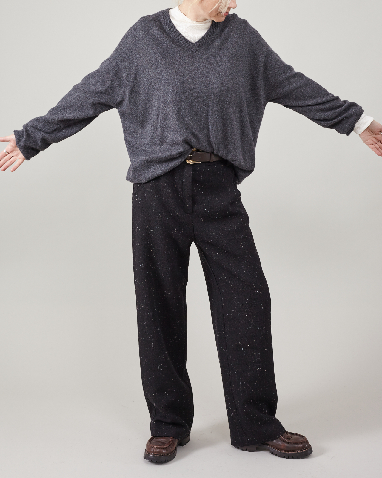 Materialul din care sunt făcuți este stofă de lână 100%, groasă și călduroasă, iar căptușeala pe toată lungimea piciorului este 100% vâscoză. Acești pantaloni reprezintă o investiție pentru multe sezoane. Modelul clasic și materialul de calitate îți garantează acest lucru.